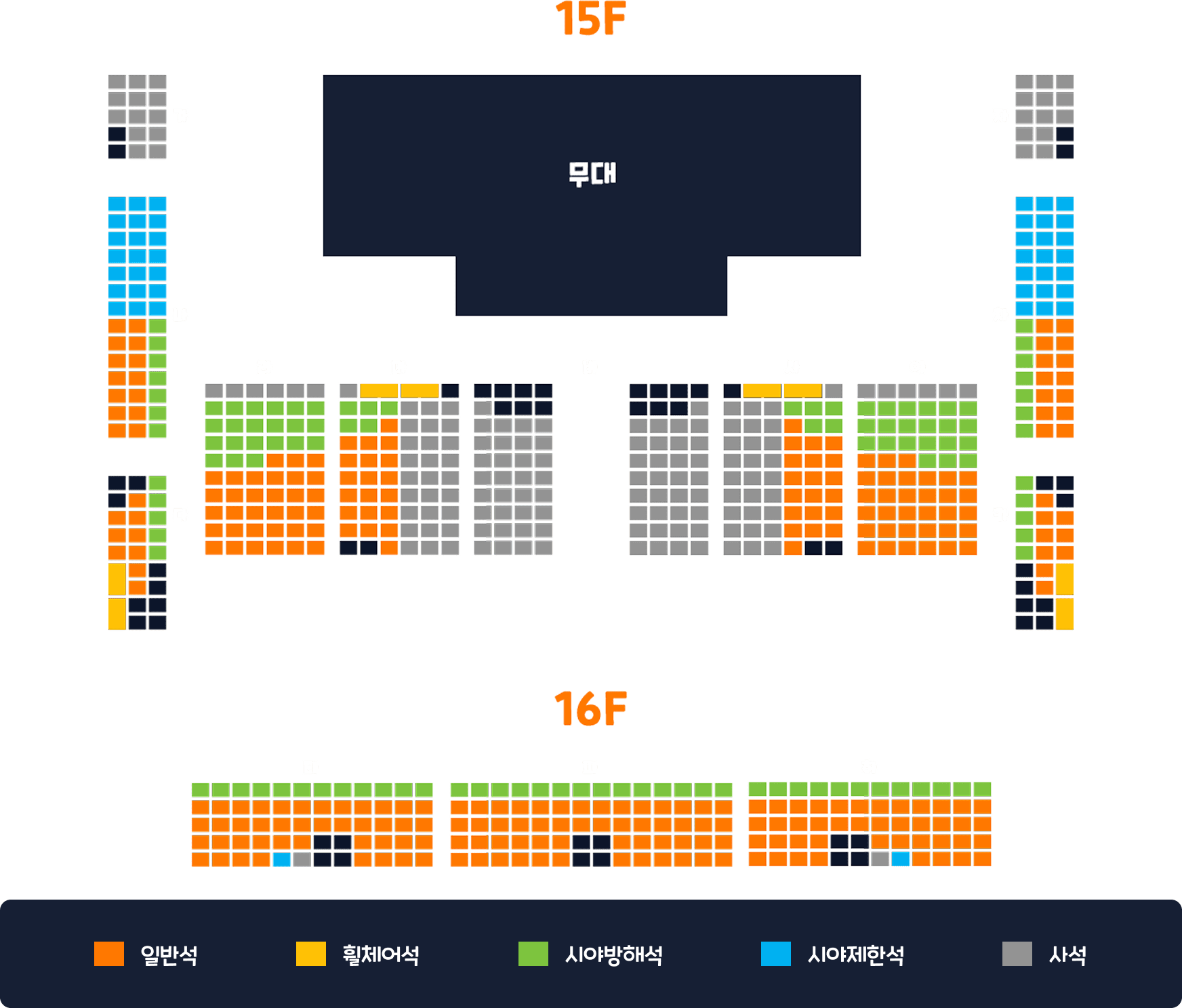 일부 구역은 무대 연출 상황에 따라 시야가 일부 제한될 수 있습니다.